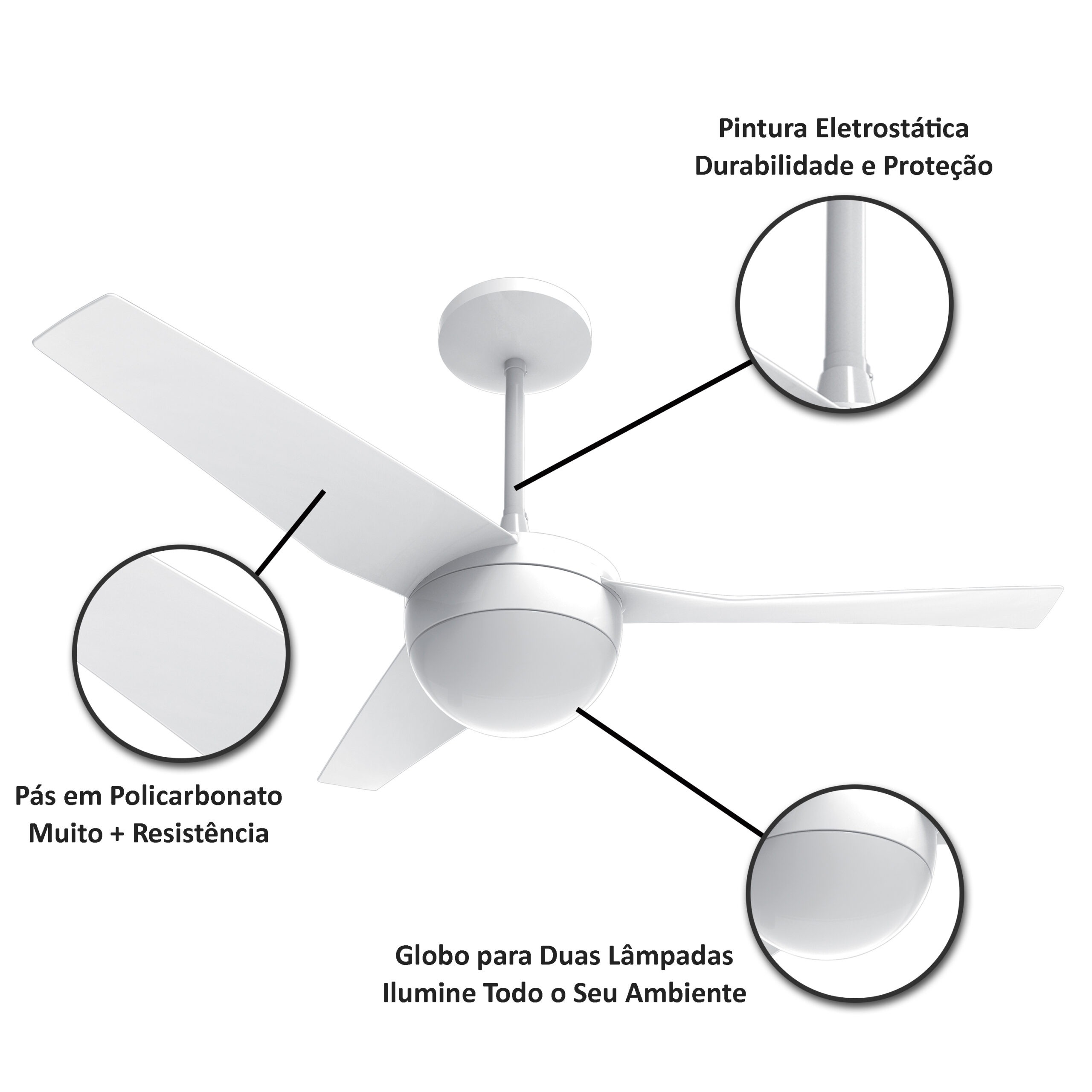 Ventilador De Teto Aliseu Terral Cristal Plus C/ Controle Remoto e Controle de Parede